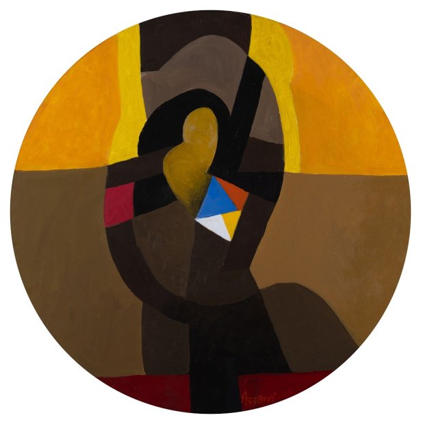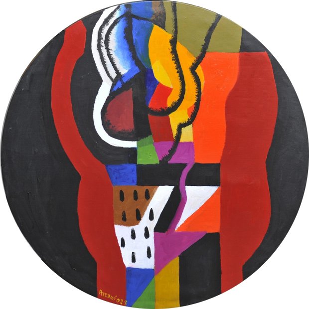 Marrakech Sunset, 2023. Acrylic on canvas, diameter 80 cm. Private Collection. © Dia Al-Azzawi. Courtesy of Galerie Claude Lemand, Paris.