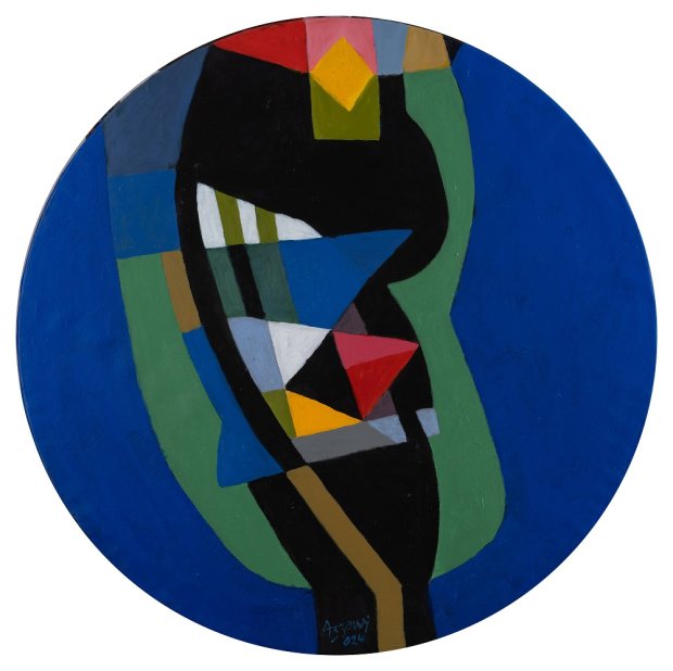 Blue Window, 2024. Acrylic on canvas, diameter 80 cm. © Dia Al-Azzawi. Courtesy of Galerie Claude Lemand, Paris.