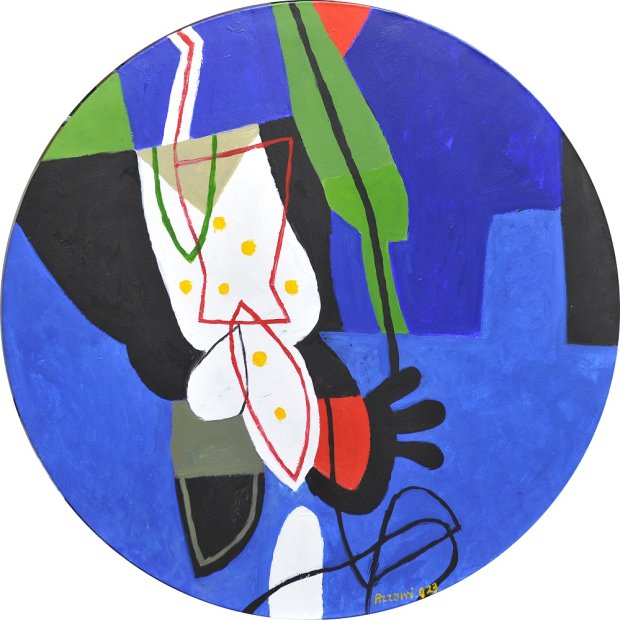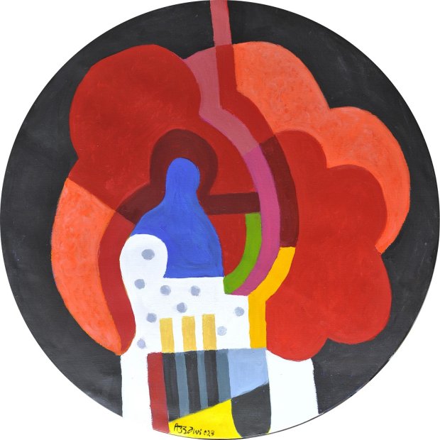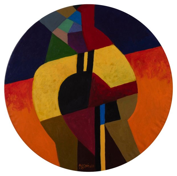 Sunny Day, 2024. Acrylic on canvas, diameter 80 cm. © Dia Al-Azzawi. Courtesy Galerie Claude Lemand, Paris.
